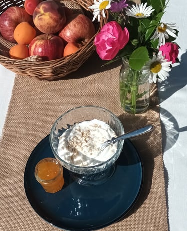 Le yaourt nature représente une base idéale pour accompagner une délicieuse confiture d'abricot Français. Cette combinaison harmonieuse offre une riche expérience gustative.